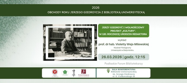 W ramach Roku Giedroycia i Podlaskiego Forum Bibliotekarzy zapraszamy na kolejne spotkanie poświęcone postaci Jerzego Giedroycia - naszego patrona i jego wolnościowemu projektowi „KULTURY”